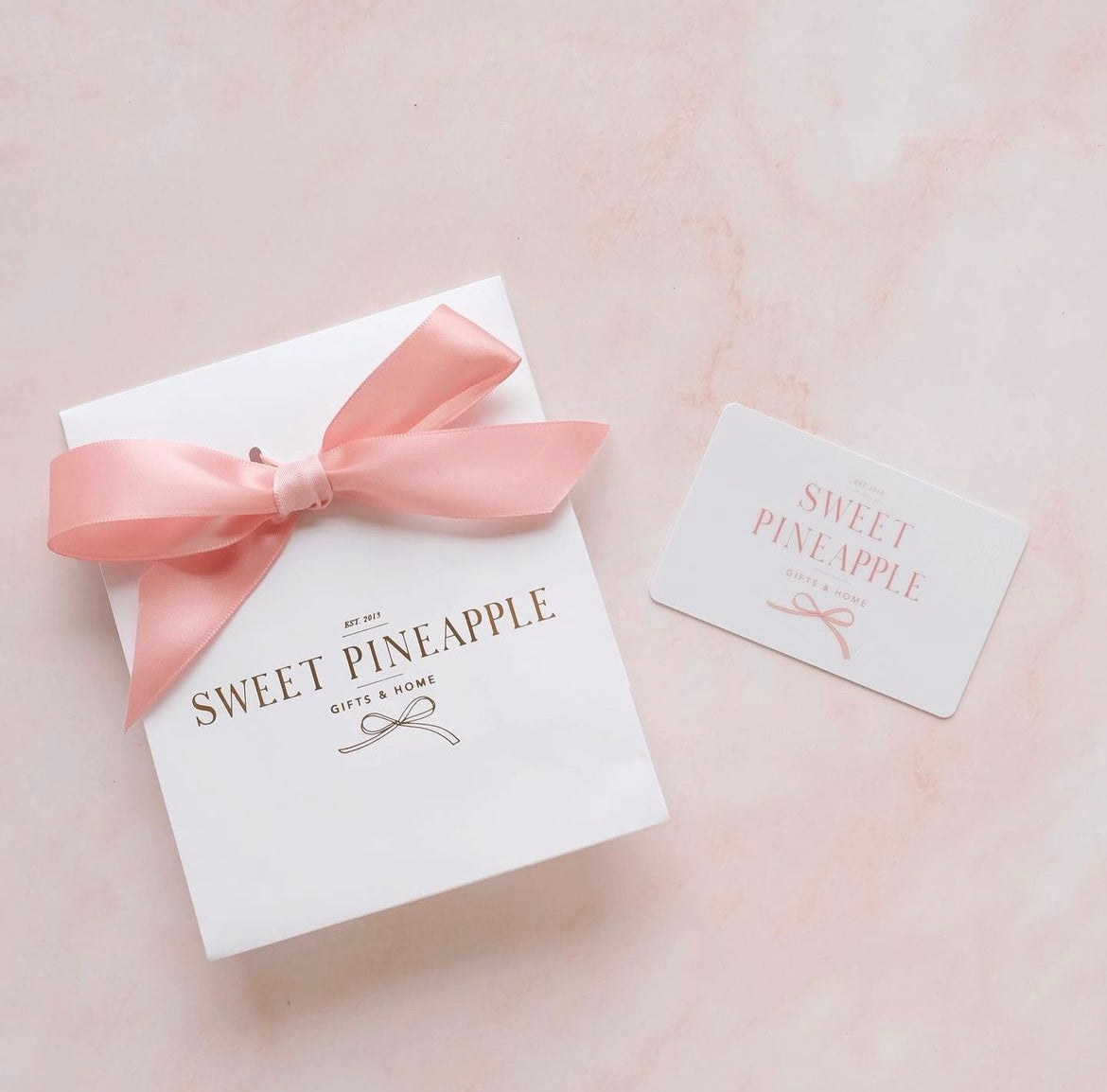 Get the best of both worlds with this DIGITAL gift card! Simply add to your cart and you will receive a digital code directly to your inbox upon checkout. This code CAN be used in store! *If you are not seeing your desired gift card amount in the drop down, please email info@shopsweetpineapple.com with the amount you would like and we will send you a custom invoice to complete online.